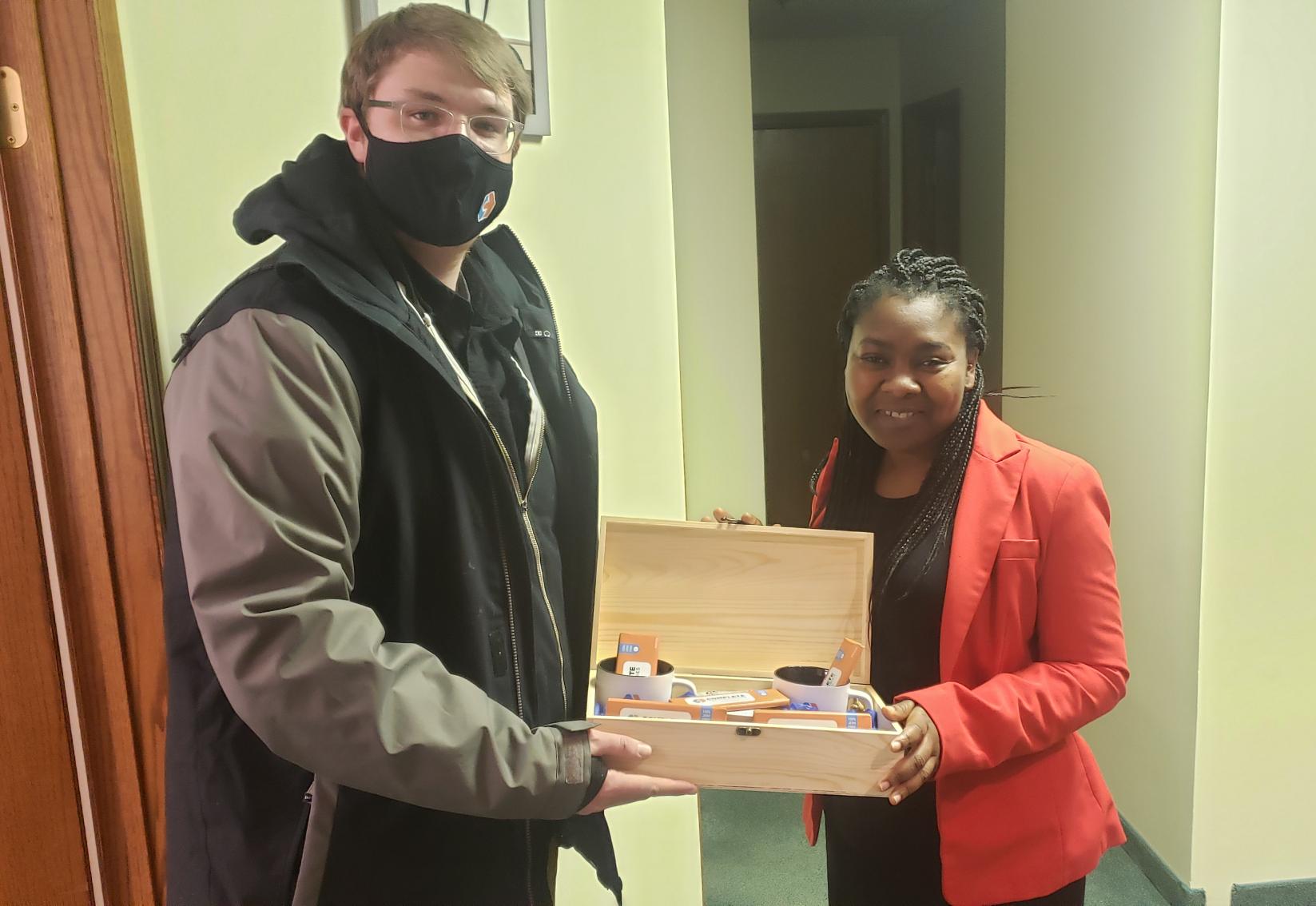 Johaine is intelligent, patient, and kind. We are proud to have a great relationship with her and her business. To show our appreciation, we gave her our gift basket full of chocolate, coffee, mugs, and other little goodies.